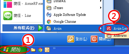 點擊左下角「開始」→開啟所有程式(P)→點選「Avira Launcher」圖示開啟軟體。