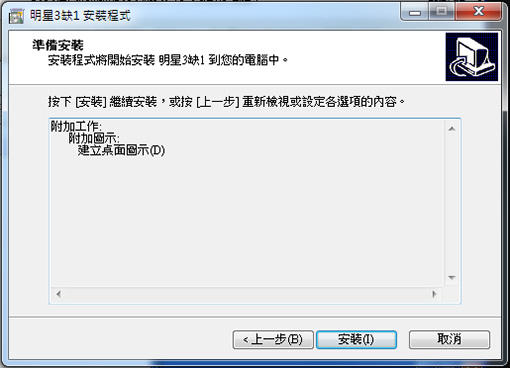 4. 按下 「安裝」 鈕開始進行安裝。