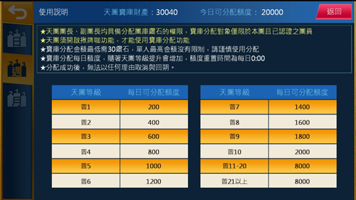 4.寶庫每日分配額度將隨天團等級提升而增加,額度重置時間每日00:00