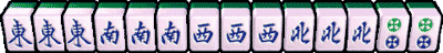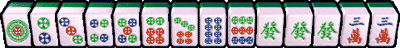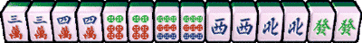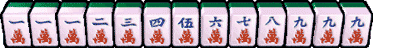 把同種數牌整理成連續四刻的情形。 例如:三萬刻 + 四萬刻 + 五萬刻 + 六萬刻,再加一組對子,是為四連刻。 |
