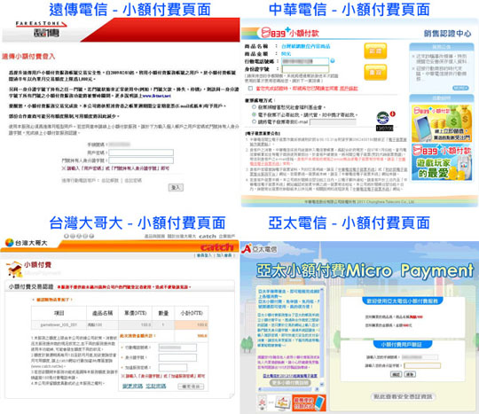 Step 4 進入各家電信業者的小額付費頁面,輸入身分證字號或密碼。然後依著頁面指示進行付費步驟。(各家電業者所需填寫的資料與付費步驟會有些許的不同。)
