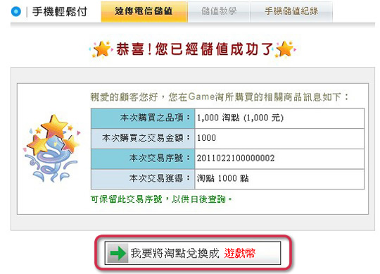 Step 5 恭喜您儲值淘點成功。