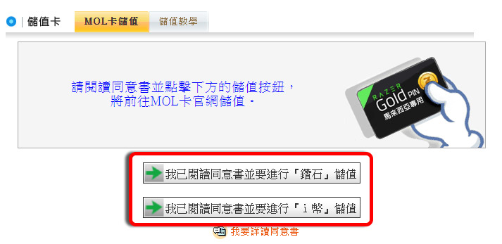 「國際充值專區→MOL」