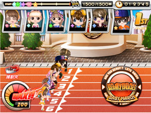 寶寶進行曲 多人:固定距離,比賽看誰先到終點站 指令:遊戲中玩家押住Z按鍵,就可以開始跑步囉! 跳躍:空白鍵 使用道具:X鍵 參加人數越多,結算時可獲得的積分越多喔!