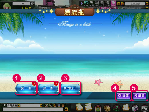 離開按鈕 點選後離開漂流瓶介面