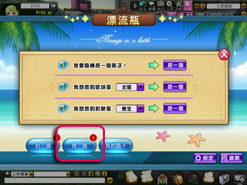 設定按鈕 可針對漂流瓶進行設定
