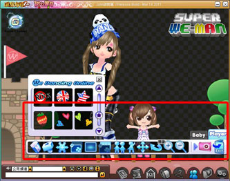 點選「Player」、「Baby」按鈕,可切換人物、寶寶的操作介面。