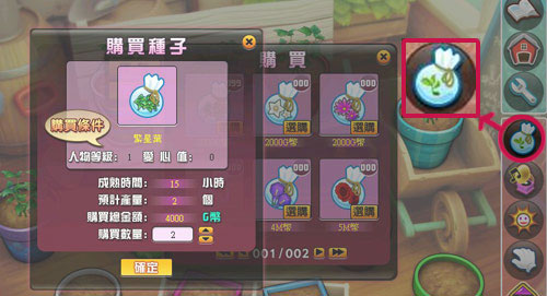 *依據種子不同購買條件也不盡相同,人物等級、愛心值必須符合條件才能購買唷!