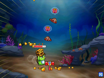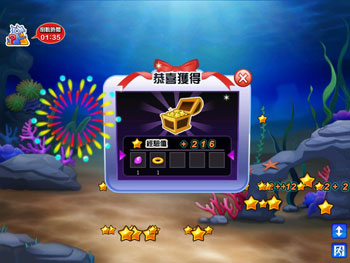 掉寶: 只要點選魚頭頂出現「禮物盒」,魚就會掉出不同的寶物與經驗值。