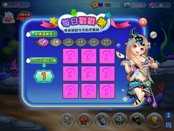 戳戳樂: 每天登入遊戲,進入魚缸即可免費玩一次「戳戳樂」,將可獲得獎勵。