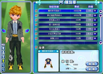 2進入購物車選單後,請先挑選確定要購買物品(打勾表示選擇購買),另外可利用「時限」欄位調整購買服裝或道具的使用天數,最後點選「結帳」即可完成購買動作,結帳會顯示總G幣與M幣的花費金額。