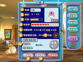 音樂精靈寄養 音樂精靈房間中同時只能飼養三隻音樂精靈,若想飼養更多不同造型的音樂精靈就請多多利用寄養功能吧!只要在音樂精靈房間中按下寄養按鈕就可以進入寄養介面,寄養的音樂精靈狀態會保持著寄養之前的數值,不用擔心寄養之後能力會下滑唷!