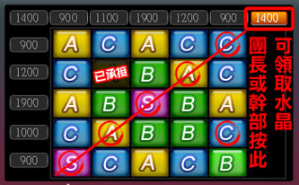 連線成功後,該條連線水晶獎勵燈將亮起,即可由舞團團長或幹部按下亮燈,領取該條連線的水晶獎勵。