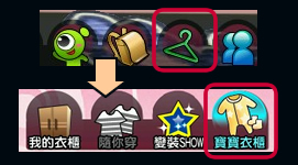 | 從「換裝」區可以進入「寶寶衣櫃」,替專屬於你的寶寶好好的打扮一下! |