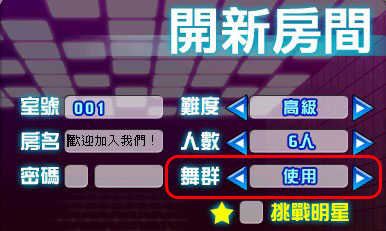 進入舞蹈廳等待區選擇開新房間,必須選擇勾選使用「唯舞舞群」