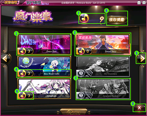 (註:歌曲難度若與過關條件難度不同的話,魔幻樂章不算過關喔!) |