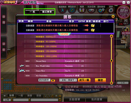 (9) 當玩家選擇魔幻樂章歌曲時,配對區會顯示魔幻樂章小圖示,玩家可邀請其他玩家一起挑戰魔幻樂章歌曲。