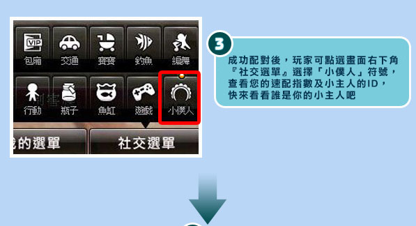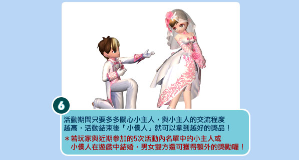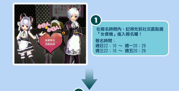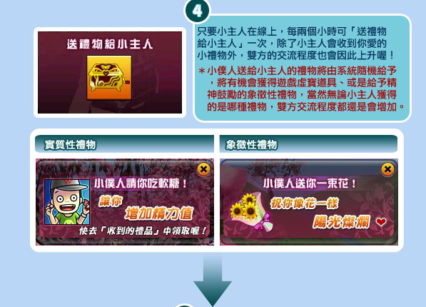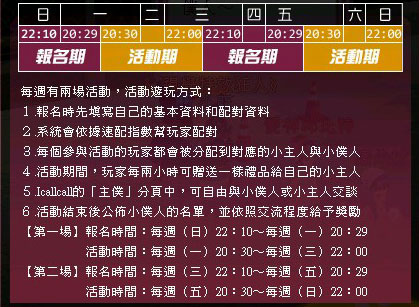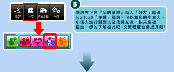 活動期間小僕人可以藉由以下方式來累積與小主人之間的交流程度(交流程度數字顯示於Icallcall「主僕」分頁中,會在每次進入社交區時更新)