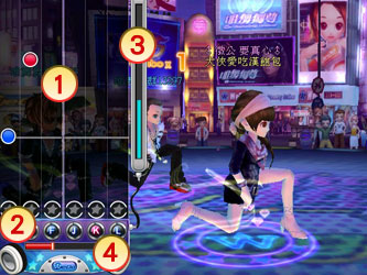 舞標由上方掉落,跟原本的節奏類型玩法不同在於同時會有兩個以上的複合鍵,使得難度提高,更能展現玩家專業技巧與高技術性的遊戲玩法。