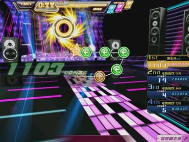 1、指令:隨著歌曲進行,指令將依循路徑方向前進,使用上下左右四方向鍵操作,當判定點與打點吻合時為最佳打擊時機。