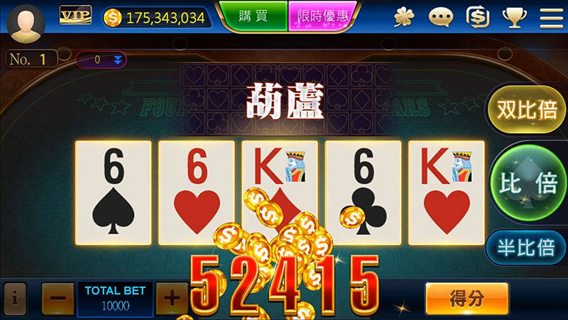 ◆ 鬼牌玩法,任意取代牌型,鐵支、同花順都不是夢~