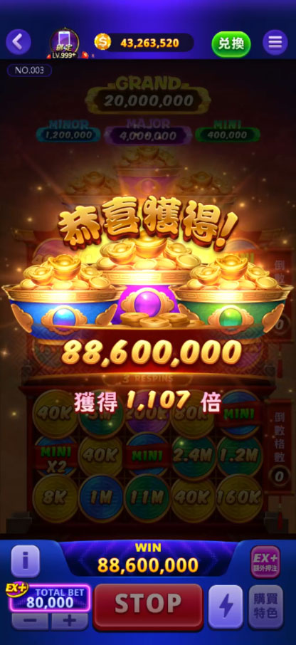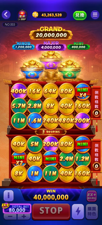 ◆ 金幣翻倍再加局!贏分累積爆不停!