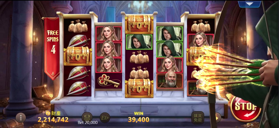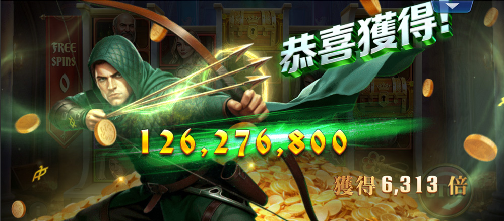 ◆ 黃金免費遊戲中,未連線必定射箭,勝利一箭到位。