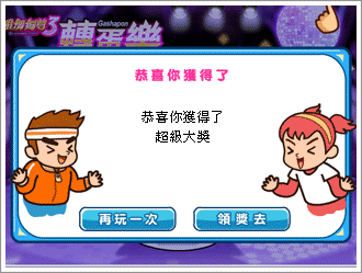 恭喜你獲得獎品,你可選擇「再玩一次」或者是點選「領獎去」按鈕領取獎品。
