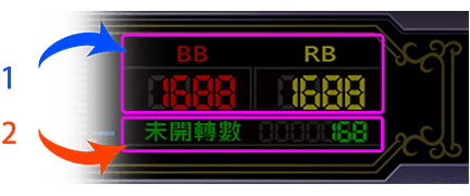 (當BB或RB開出次數大於9,999次時,BB/RB 的歷史次數會一起歸零)